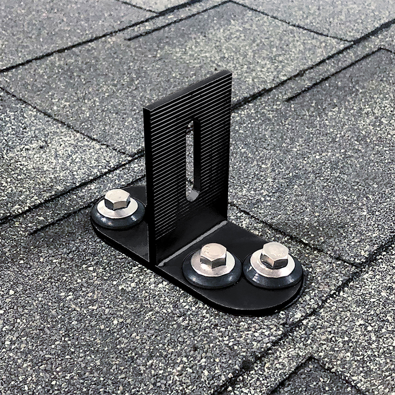 Though most mounting solutions are sold in the stainless steel color we’re all familiar with, aesthetics have come to the forefront of the mounting industry and seen an increase in black-colored mounts. QuickBOLT was quick to see the trend and offer a solution that would allow installers to deliver the perfect look for their customers’ homes. Soon, every mount in the Original Top Mount line can be purchased with a milled black finish so that they blend right in with the asphalt roof. Find QB2 with the black L-Foot on QuickBOLT.com.