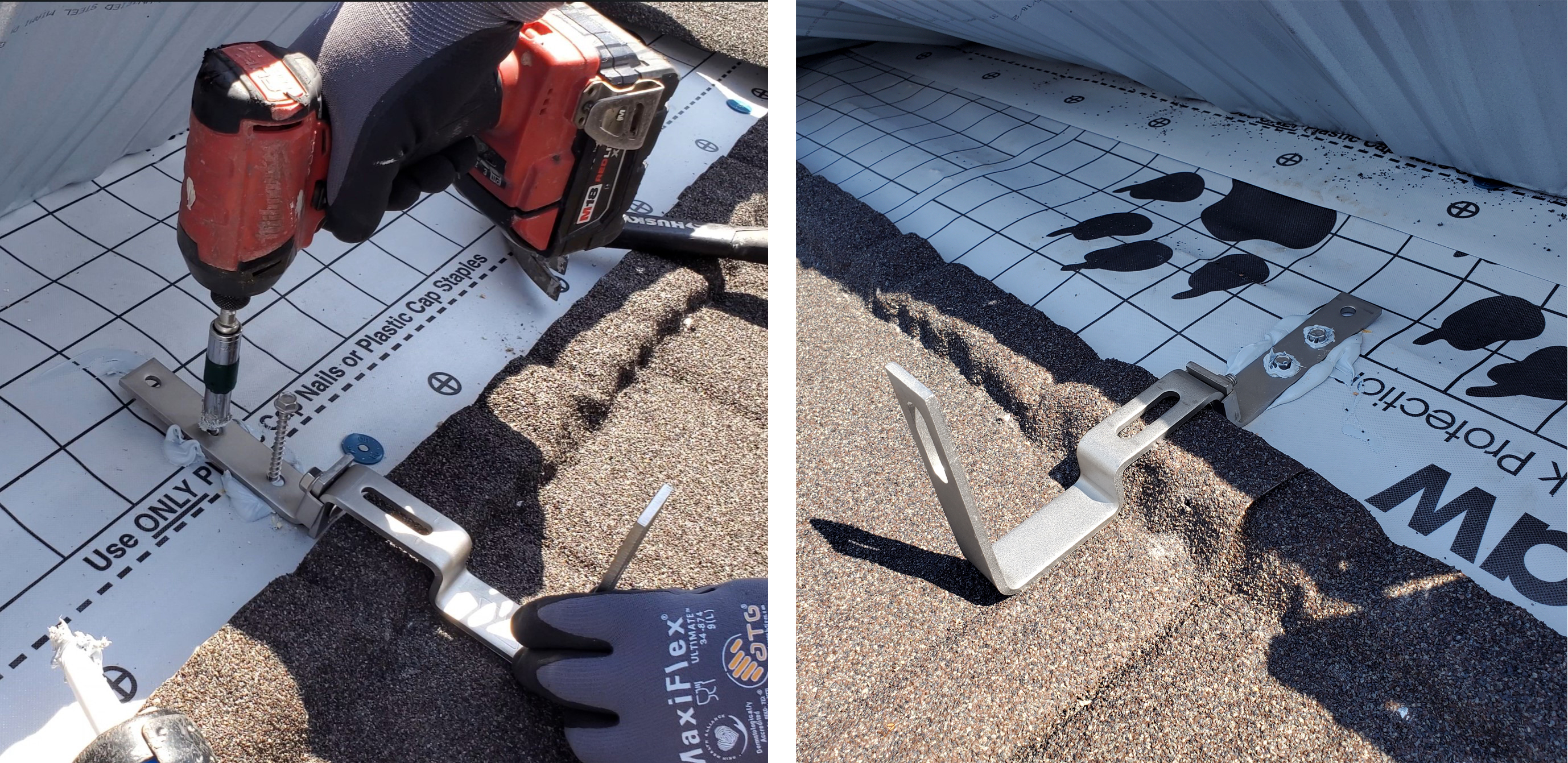 We developed our newest mount – 17566 – with Unified Steel’s™ help, and the solution demonstrates how collaboration can benefit the entire roofing/solar industry. We took the arm from our SCS hooks which were designed to bridge the overlap on Stone Coated Steel roof panels and attached it with the wide base used in our Curved Tile solar mounts. The wide base allows installers to bolt into the roof rafter and adjust the arm according to the location of the barrel on curved profile models.